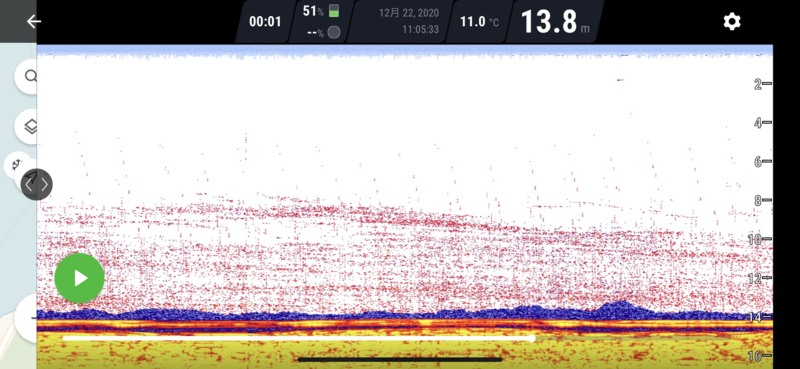 魚探を見ながら釣りしていましたが、10m~13mの間を回遊している感じでした。