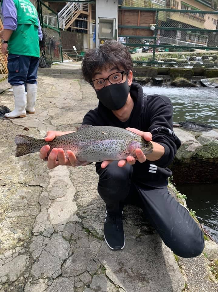 大阪府南河内郡の千早川マス釣場でニジマス釣果