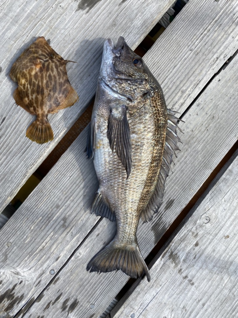 - チヌ1枚、カワハギ1枚