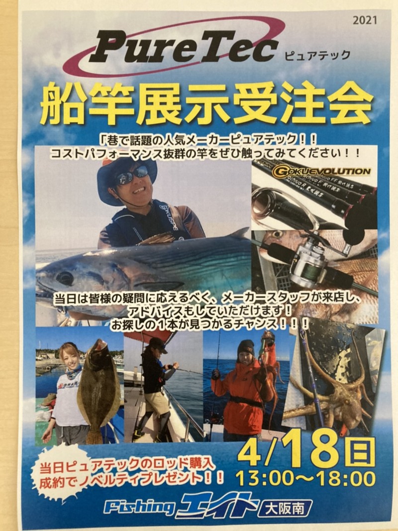 ピュアテック船竿展示受注会 | つり具豊富フィッシングイチバン・エイト大阪・京都の大型釣具店