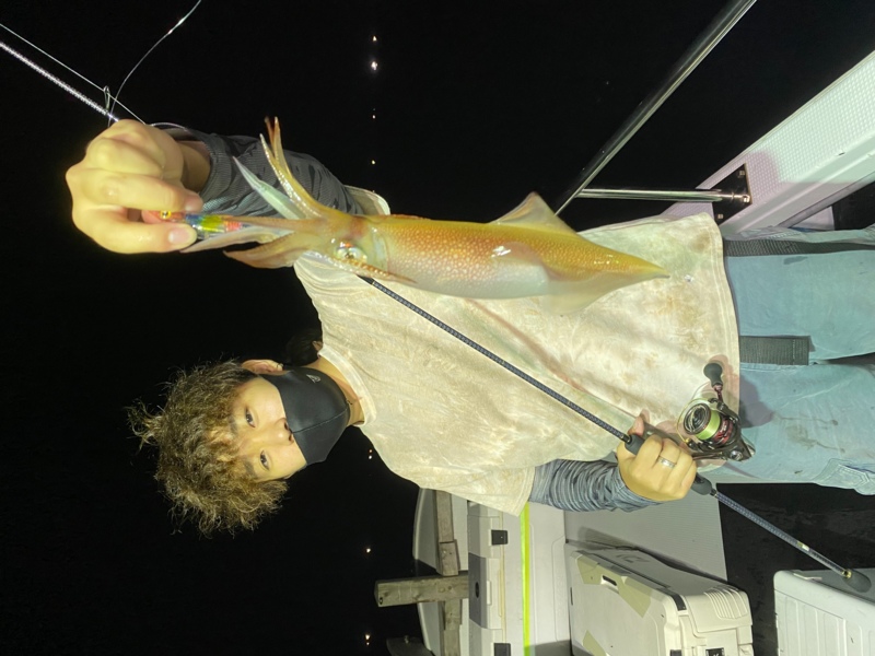 大きなアタリが!上がって来たのは良いサイズのケンサキイカでした!!!