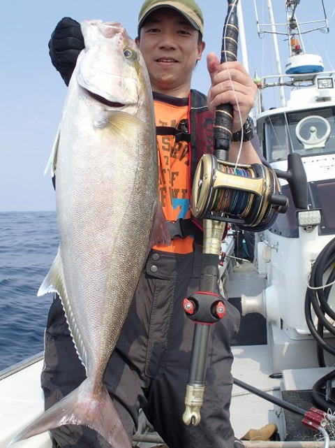 もともとはジギング船をやっている夏丸さんですが、最近泳がせを始めたとのことで、いざ出陣。ハリス100号、錘270~400号という未知の仕掛けで挑んできました(笑)当日は風も強くなく天気もグッド。4時出船の船に乗り、餌のサバを30匹程釣ってからポイントに向かいました。ポイントについてすぐ、良型のメジロがヒット!それから少し慣れてきたところから深さ100~200mの大物ゾーンへ。大物が来ることを信じてしばらくこまめに底を3m切ることを続けていると・・・ついに出ましたマハタ15キロ!!生で見るとすごい迫力です。みんなで叫んじゃいました(笑)帰り際に5キロのカンパチがヒットし、合計12時間の実釣終了。一緒に乗ったイチバンのお客さんと合わせるとその日の釣果は15キロのマハタ2匹にメジロ、カンパチが1匹ずつ。大満足の結果となりました。愛媛の夏丸さんとても熱いです!またお邪魔します!