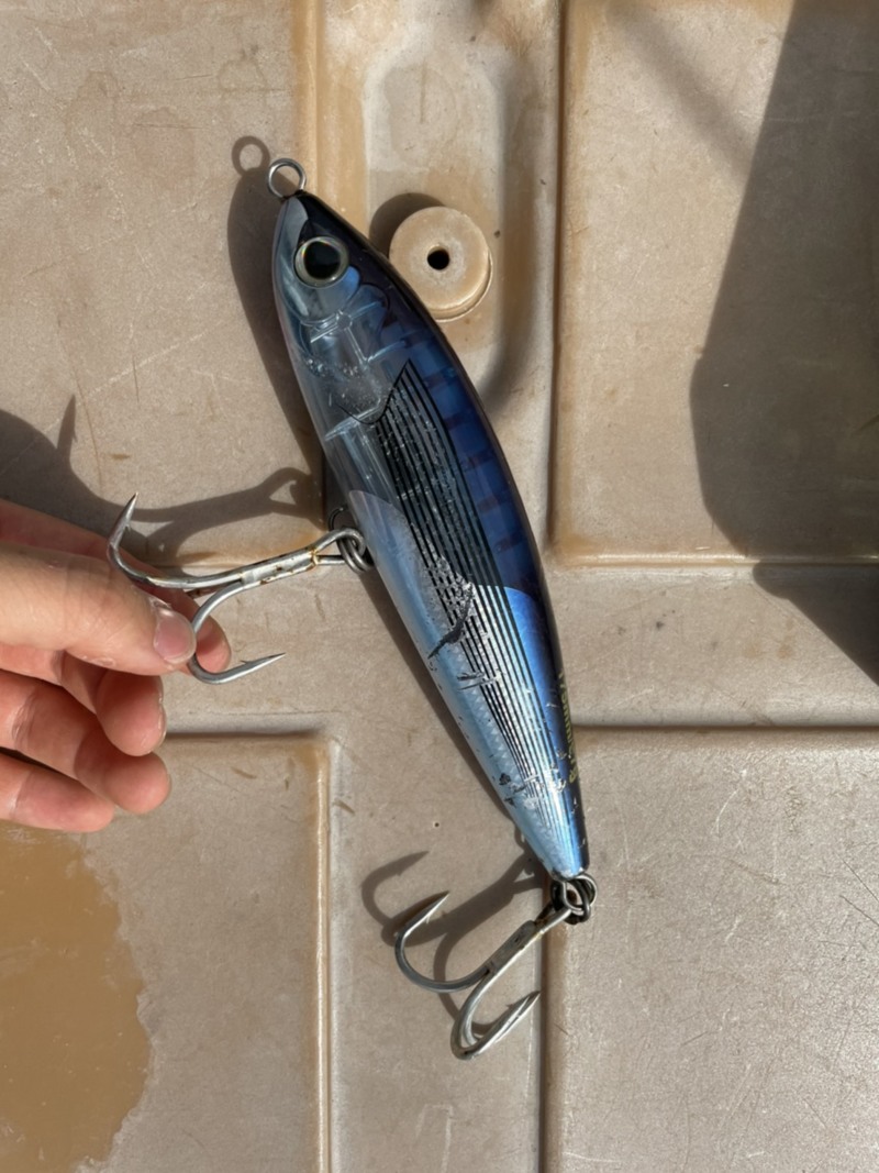 ルアーは口にちゃんとかかっていましたが、道糸のPEラインが尻尾に巻き付き、そのせいもあってか、よく引きました‥