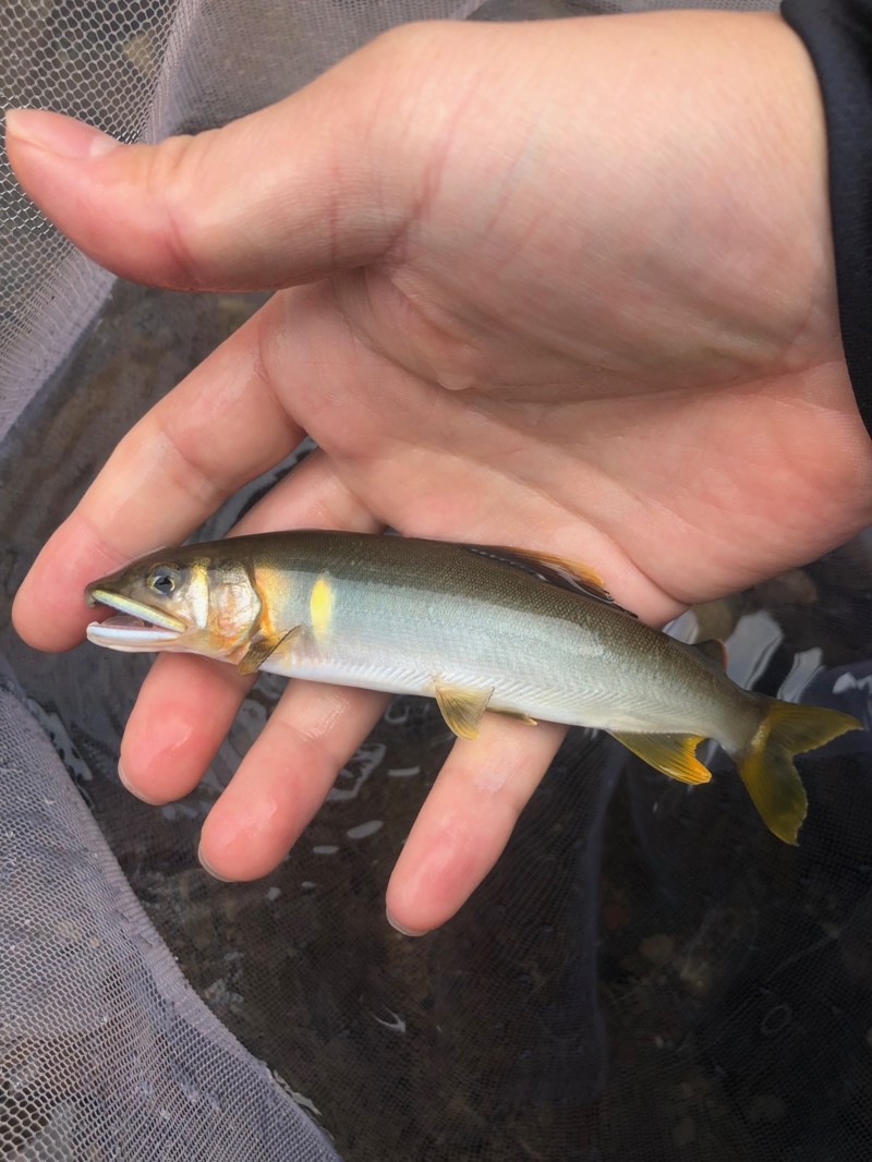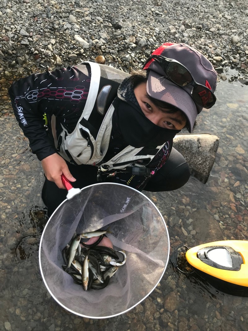 膝ほども無い水量のポイントだったので泳がせメインで攻めると15分程で1匹目。
