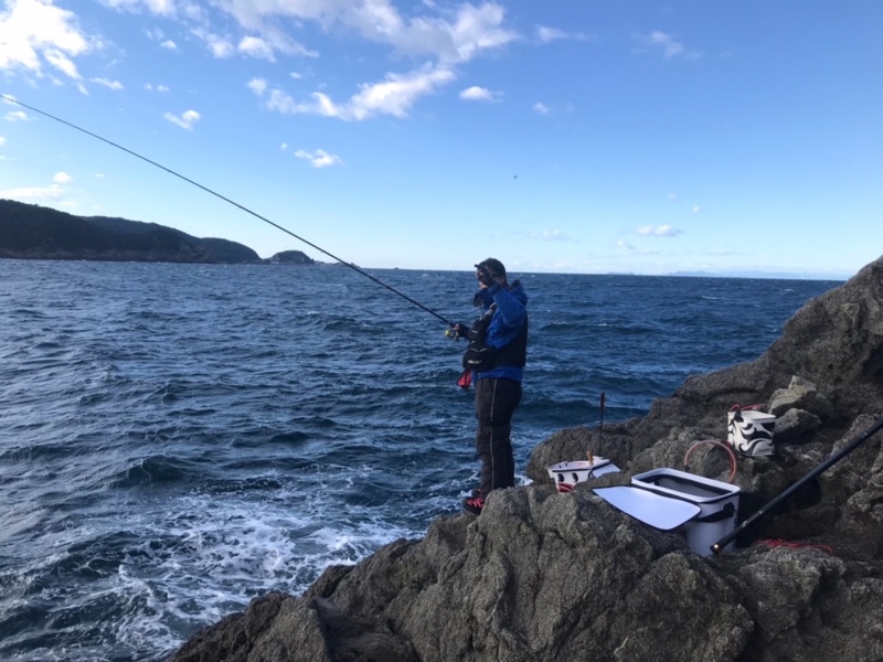 磯釣り初めてのスタッフもおり、午前中は特に風が強く、仕掛けを同調させるだけでも一苦労。。。