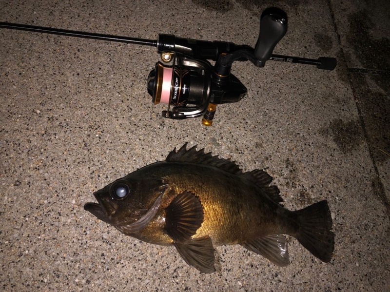 やはり風は吹いていたものの何とか風裏を見つけ釣りが出来る状態に!フロートで広範囲に探ってみましたが、あたりは無くジグ単に変更。風も若干あったので1.5gと重ためのジグヘッドで攻めることに、ボトムまで落とすと安定のガシラがヒット!その後数匹ヒットした所で、中層を探ってみたところドンッという明確なあたりが!25センチの丸々としたメバルでした!^^*