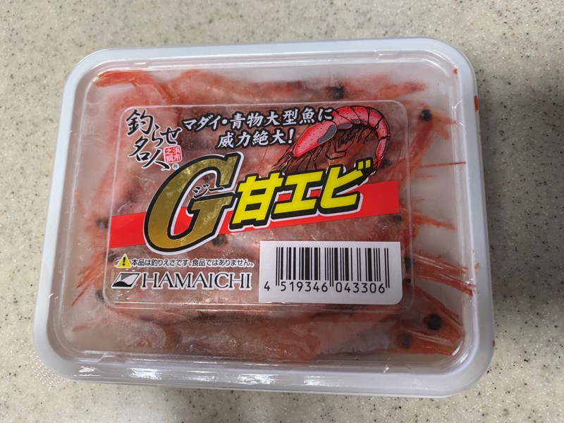 そしたら船長さんや中乗りさんに、これは大きいわ、エビは一節くらいに小さく切って、殻も全部剥いて、甘エビは、エサ持ちさえ良ければ頭の味噌の部分が一番食うよ、と教えてもらい、その通りにつけてみました。