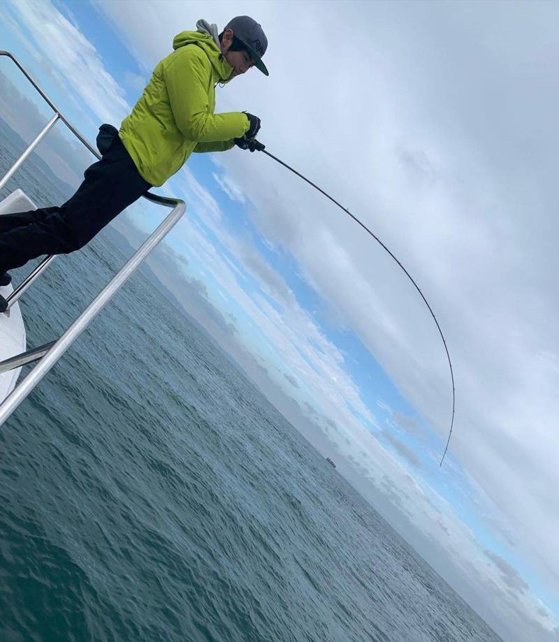 潮が濁っていて、曇りなので派手系のチャートへ変更!これがアタリ船中ファーストヒットいただきました!