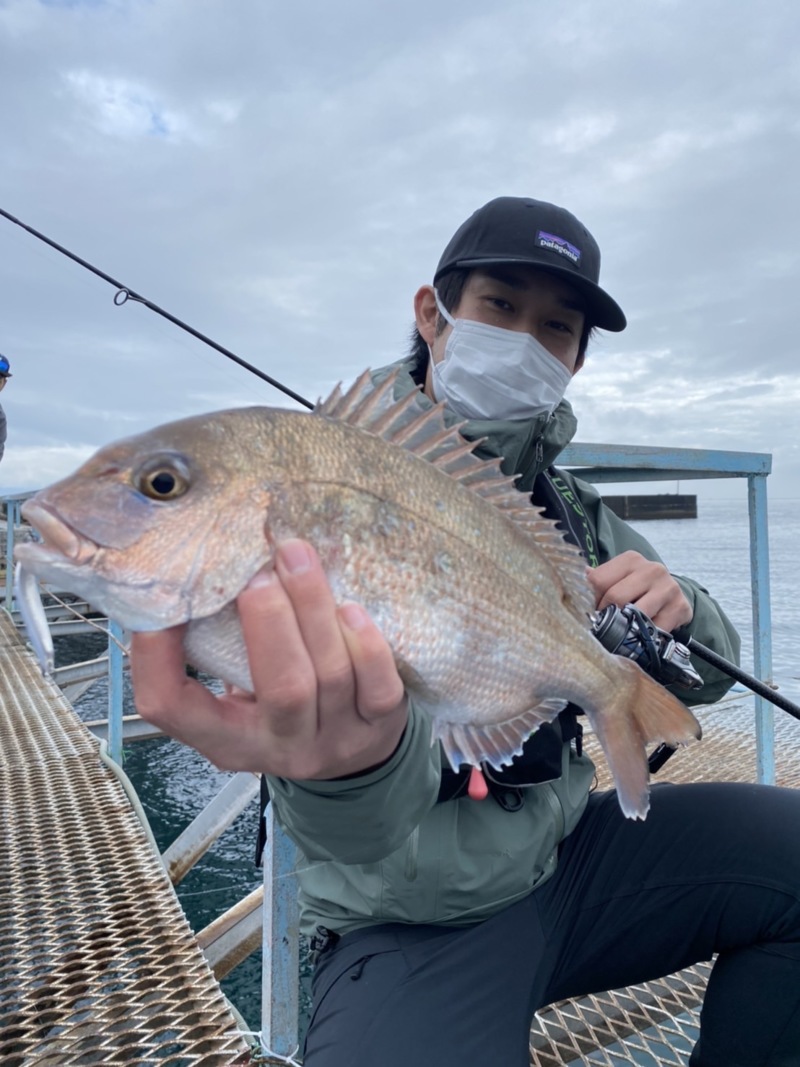 すると突如、車取にヒット!なかなか上がってこなくよく叩くなと思っていたら、まさかのマダイ。いいお土産ができました!