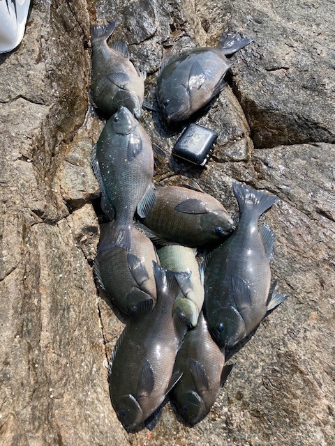 この調子で釣っていくとグレの姿もチラホラとそこのほうから出てくるのも見え出し、良型グレを数匹釣れたところで完全に潮が止まりもとのポイントへ移動。