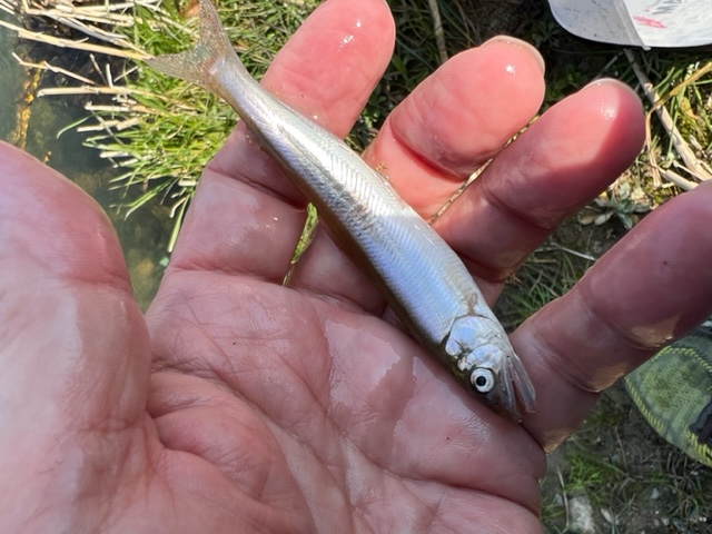 まだ氷魚サイズが多くこの時期の良型サイズ10センチ級は釣れません。
