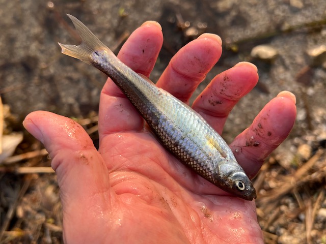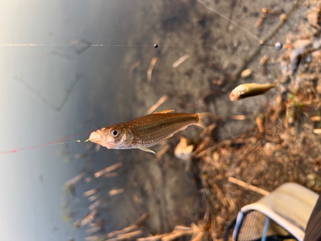 ほぼ入れ食い状態でした。水深が30センチなので2本鈎⇒1本鈎へ。