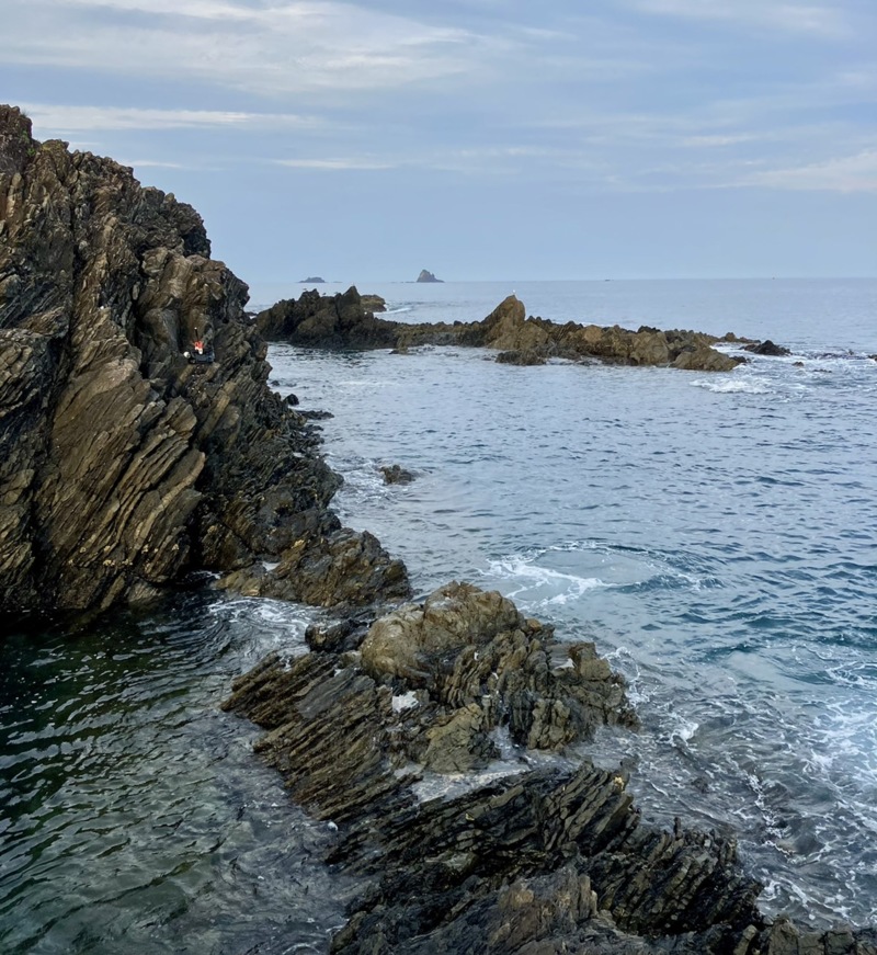 紀伊長島の磯は水深が浅く、狙う棚を絞りやすい事が特徴。ここもそうで、ゼニバコハナレとの水道に釣り座を構えました。