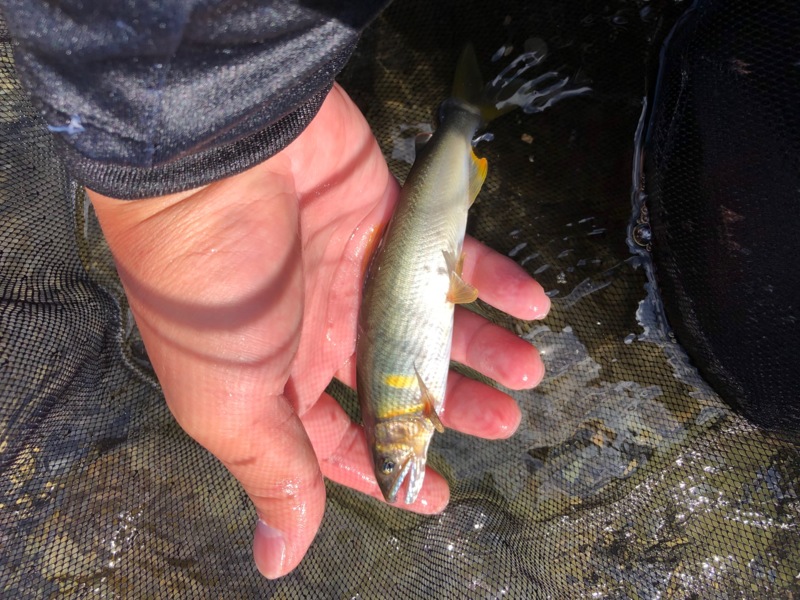 パターンを変えて流れのヨレが出来ている少し水深のあるところを上流から止めて待っていると手元にガツンと強めの感触!