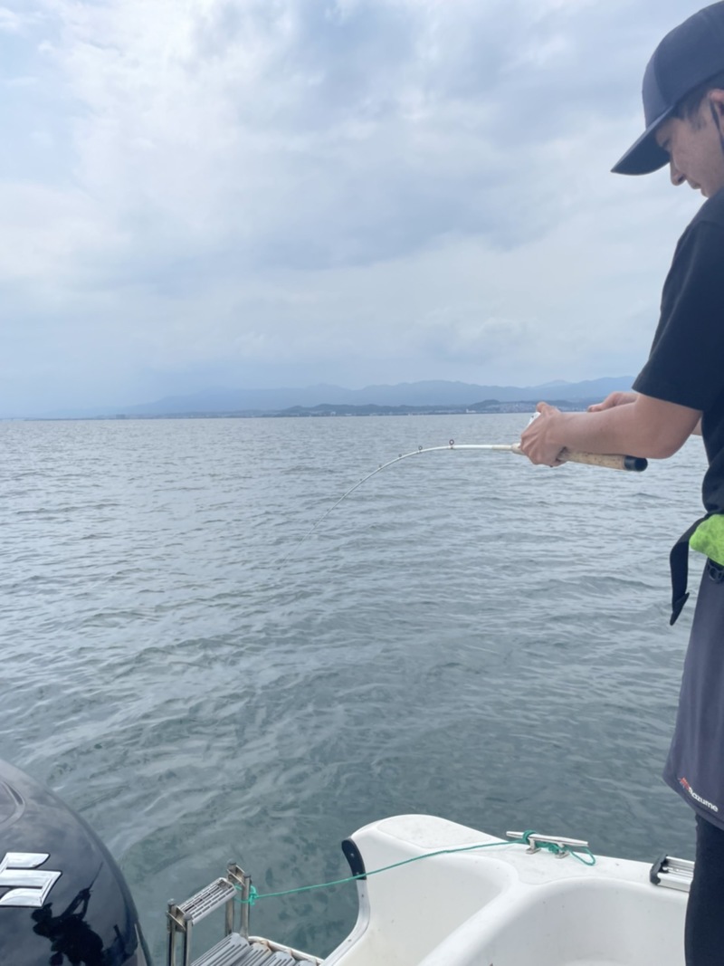 7時頃出船し、ポイントには20分ほどで到着!琵琶湖大橋が確認できるほど南のポイントで釣りをスタートしました。