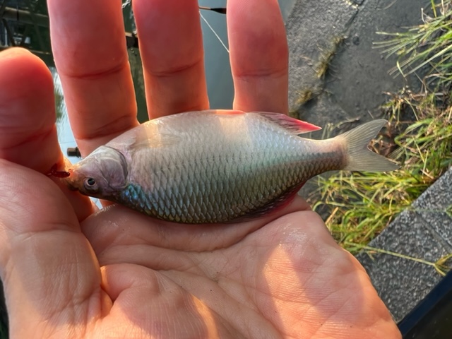 小鮒・鯉子も混じり20数匹の釣果。婚姻色バリバリのオスも数匹混じりました。
