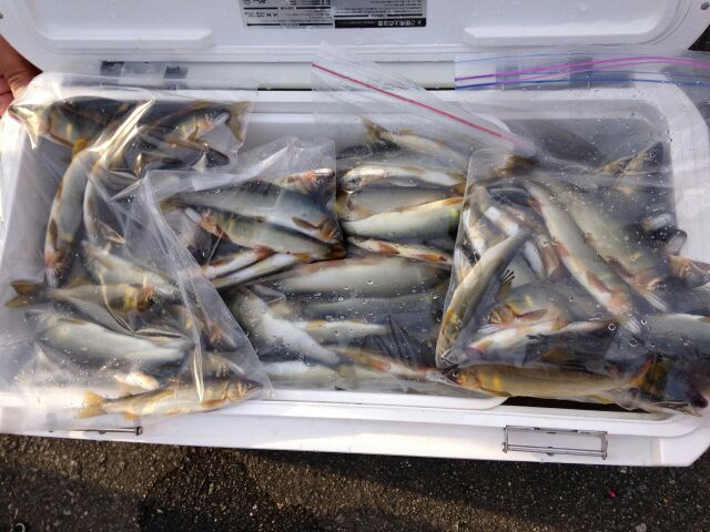 最終的に初めての鮎釣りをしたスタッフは10匹前後の釣果でした。