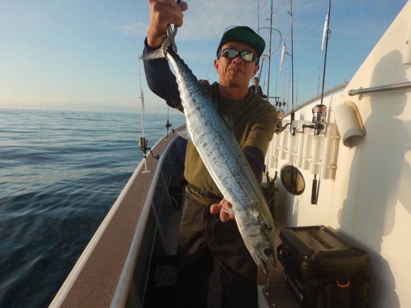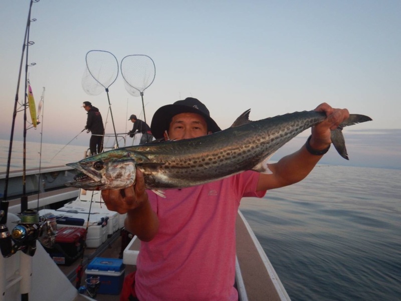 15時過ぎから続々と竿が曲がり大型のサワラ、チカメキントキ、ガシラなど様々な魚種がヒットしますが、本命の青物がヒットしません。