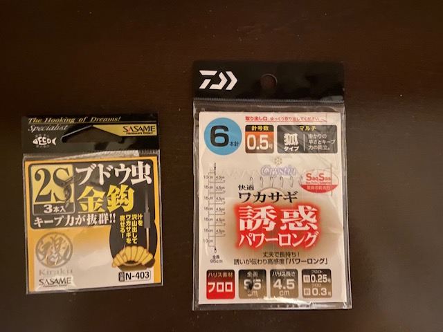 ※両方とも仕掛け上にササメ ブドウ虫金針を付けてブドウ虫を半分に切って寄せ餌に。