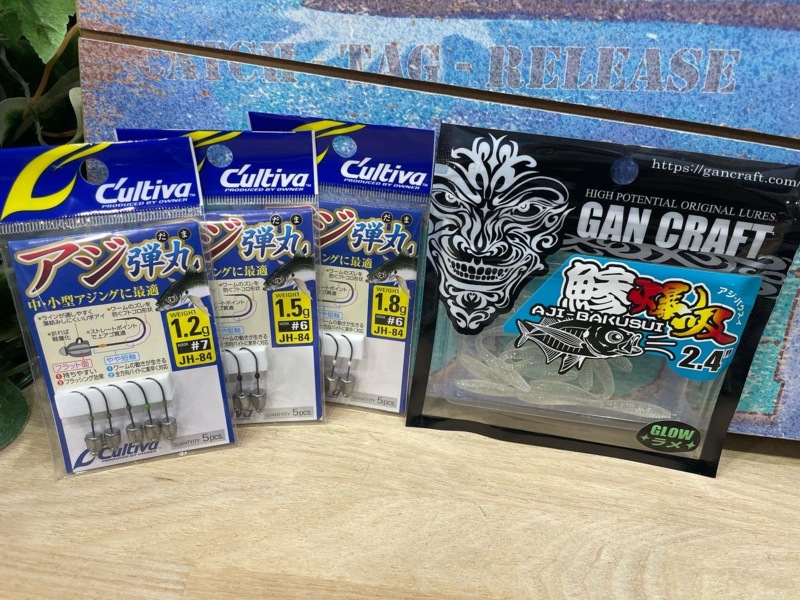 ワーム:ガンクラフト 鯵爆吸2.4 ケイテック イージーシェイカー2.5 3.5