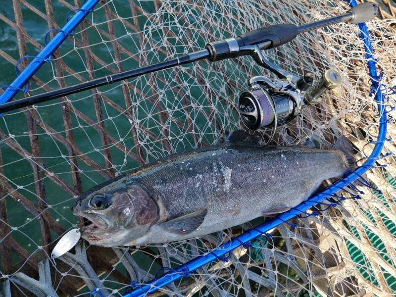 大阪府泉南の小島養魚場にてライトゲームでトラウトサーモン釣果