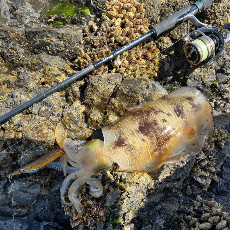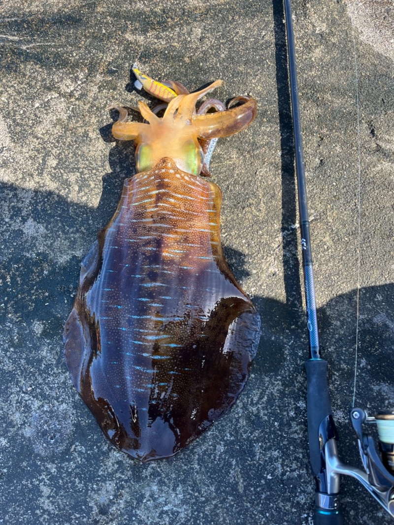 - 竿:DAIWA エメラルダスMX86ML-S リール:DAIWA CALDIA3000CXH※slp worksカスタム メインライン:PE0.4号 リーダー:フロロ6ポンド エギ: スクイッドマニア ワイルドチェイス 3.5号 ルアー:マルジン UKベイト7g