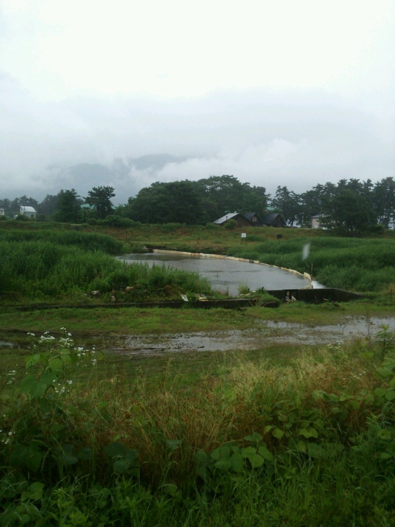 梅雨で雨が降ったりやんだりで河川状況が良いと判断し湖北知内川へ釣行。朝5時に現地到着もいきなりの雷雨で釣りができない。1時間車で待機し小雨になってきたので6時スタート。国道から2つ目の橋(醍醐橋)の上手に釣り座を構える。橋の上からは相変わらず魚影が確認できない。竿3.4Mはままつ方式完全仕掛けにパールビーズ3本鈎。底ずるラセンは0.5号。水深約30センチでウキ下を60センチにする。まづ流れのヨレに第一投。予想に反していきなり15センチ級が上がった。1つのポイントに10匹ペースで周囲を釣り歩く。9時頃にゲリラ豪雨で水量が増し濁りも出てきたので終了にした。この地点で釣果は約60匹ほど。15.6センチ級が20数引き混じった。やはり川の小鮎は大きい。帰りがけに下流を調査。JR鉄橋上下はまだ魚影が確認できそこそこの釣果が上がっていた。最下流のヤナはがっちり閉まって小鮎が遡上できない状態。大水が出ない限り釣果は乏しいだろう。