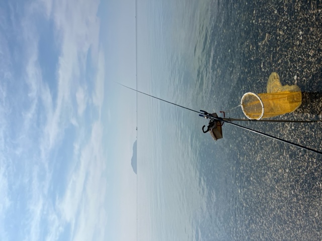 朝7時頃から浜に入りました。日曜日なのに釣り人も少なく小鮎の波紋も少なめ。