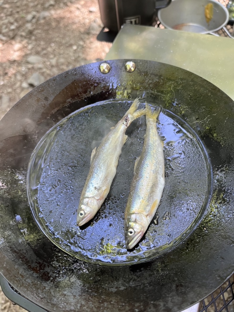 今回は釣りキャンプにて小鮎を頂くことに🐟