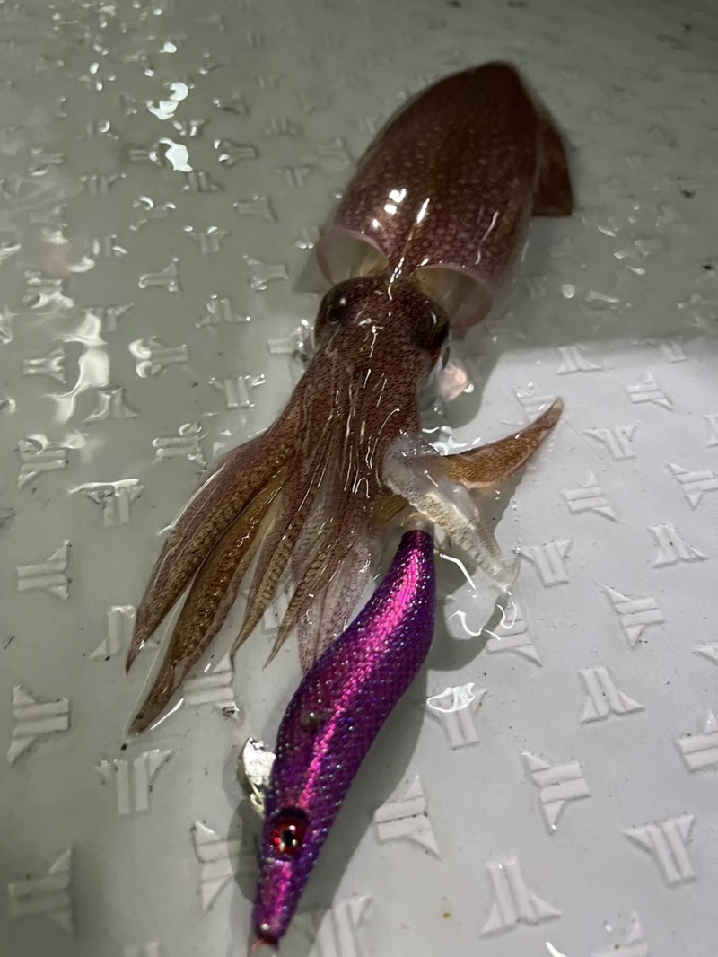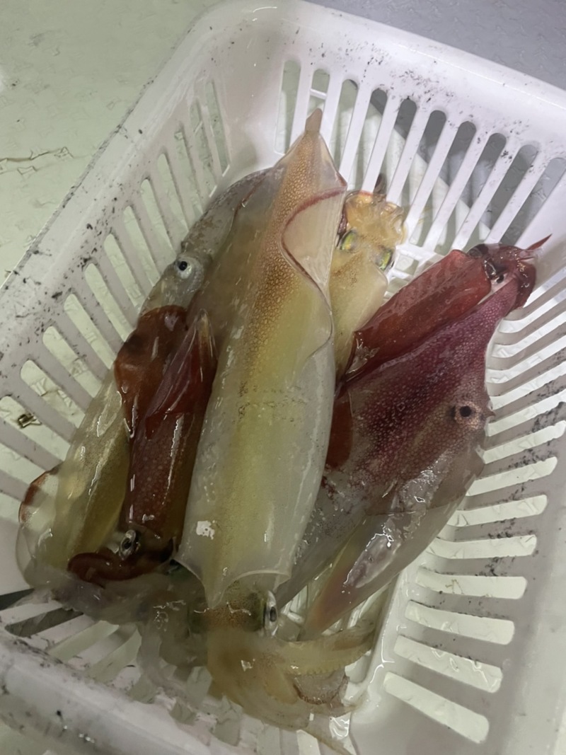 連日渋い状況が続いていたので心配していましたが、この日は釣り開始からポツポツと釣れ、点灯してからはほぼ毎投釣れるというかなりの好調で竿頭は51杯でした😎