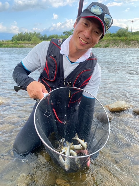 釣果はサイズは20cm前後が多かったですがいいポイントに仕掛けが入ると目印が気持ちよく飛んで、強い鮎の引きを堪能することができました。