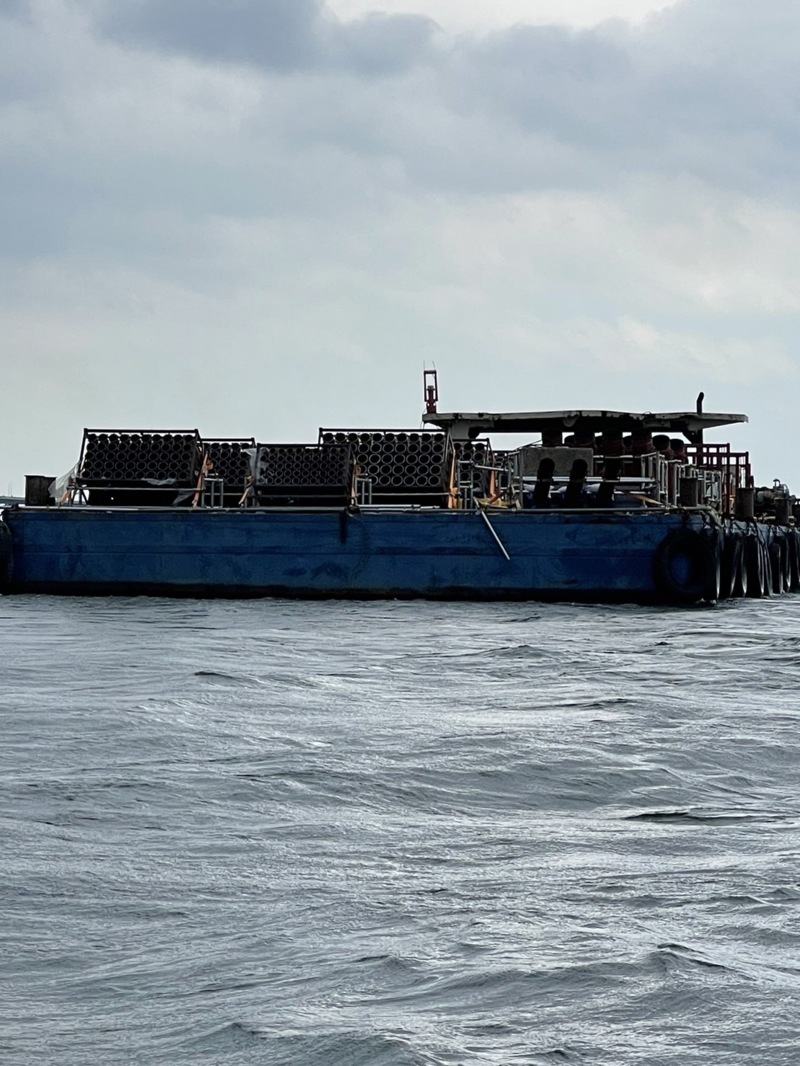 琵琶湖花火大会の翌日ということで花火打ち上げ台の撤去作業を横目に見ながらポイントへ到着。