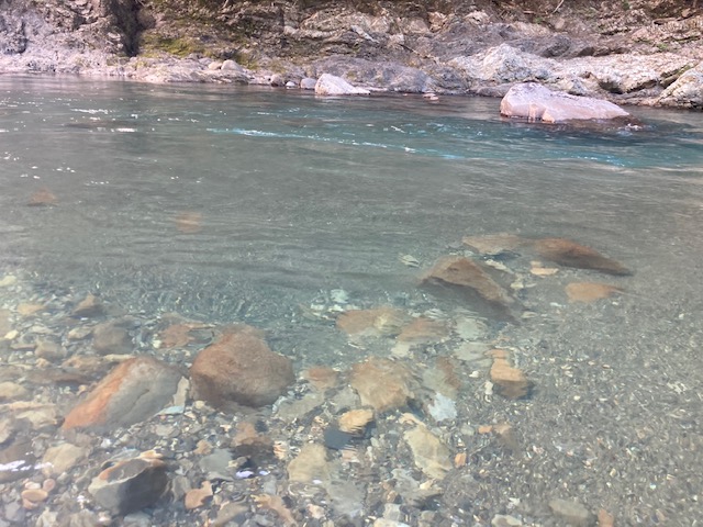 さっそく釣りを開始しますが、ものすごく掛かりそうなポイントで鮎の追う気配が無くなかなか厳しそうなスタート。