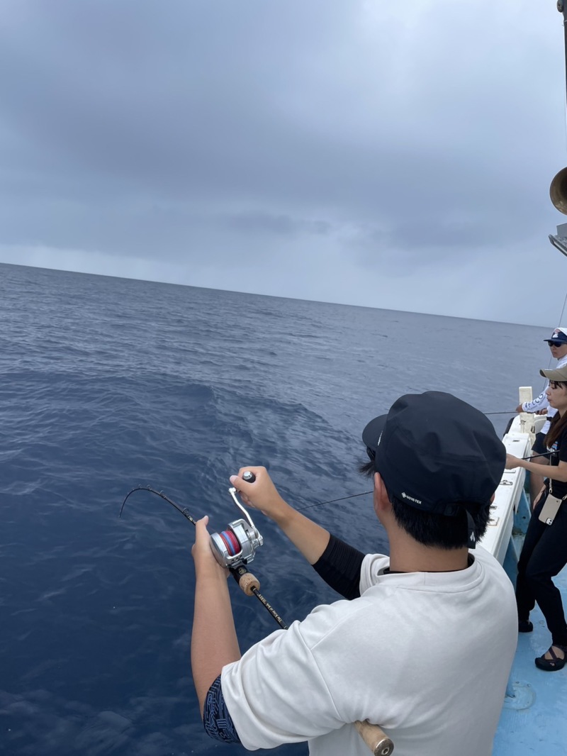 気を取り直して、底メインでメサイア400gをしゃくっていくと…スタッフ増田にも底でキハダマグロが!!!2時間弱ファイトし、水面まで魚が見えてくるも無念のラインブレイク…