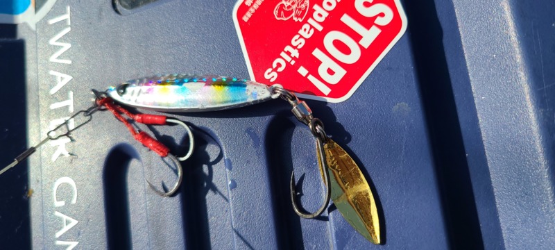 少し時合が落ち着いてからはポロポロ拾い釣りモード。少しジグに動きを出すためにジグパラTGにウイロータイプのブレードフックを着けて更に早く巻きます。これが異常に効果的で途中一人ラッシュに突入してました。