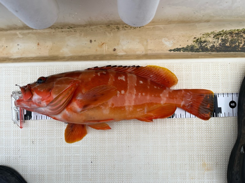 そんなこんなで35~38cm程のアカハタを6匹追加し、お持ち帰り分は確保できたので14:30頃に納竿としました。