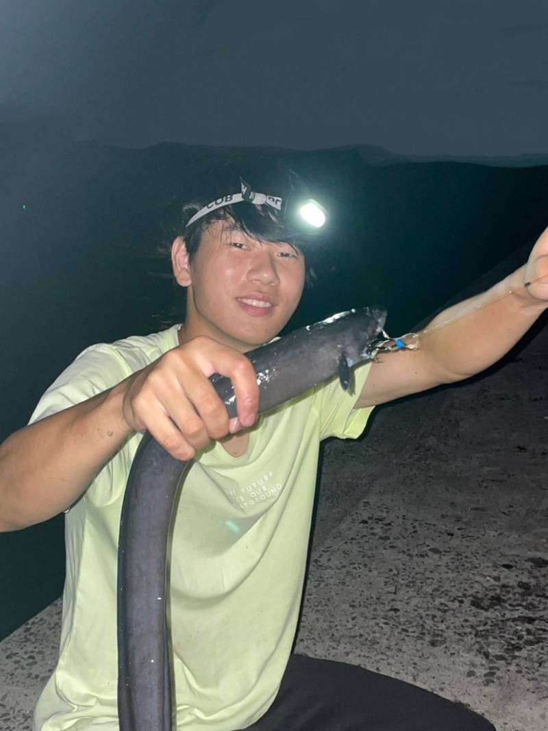 さらに、アジのウキのませでは腕の太さにも迫る太さの巨大クロアナゴをゲット💪