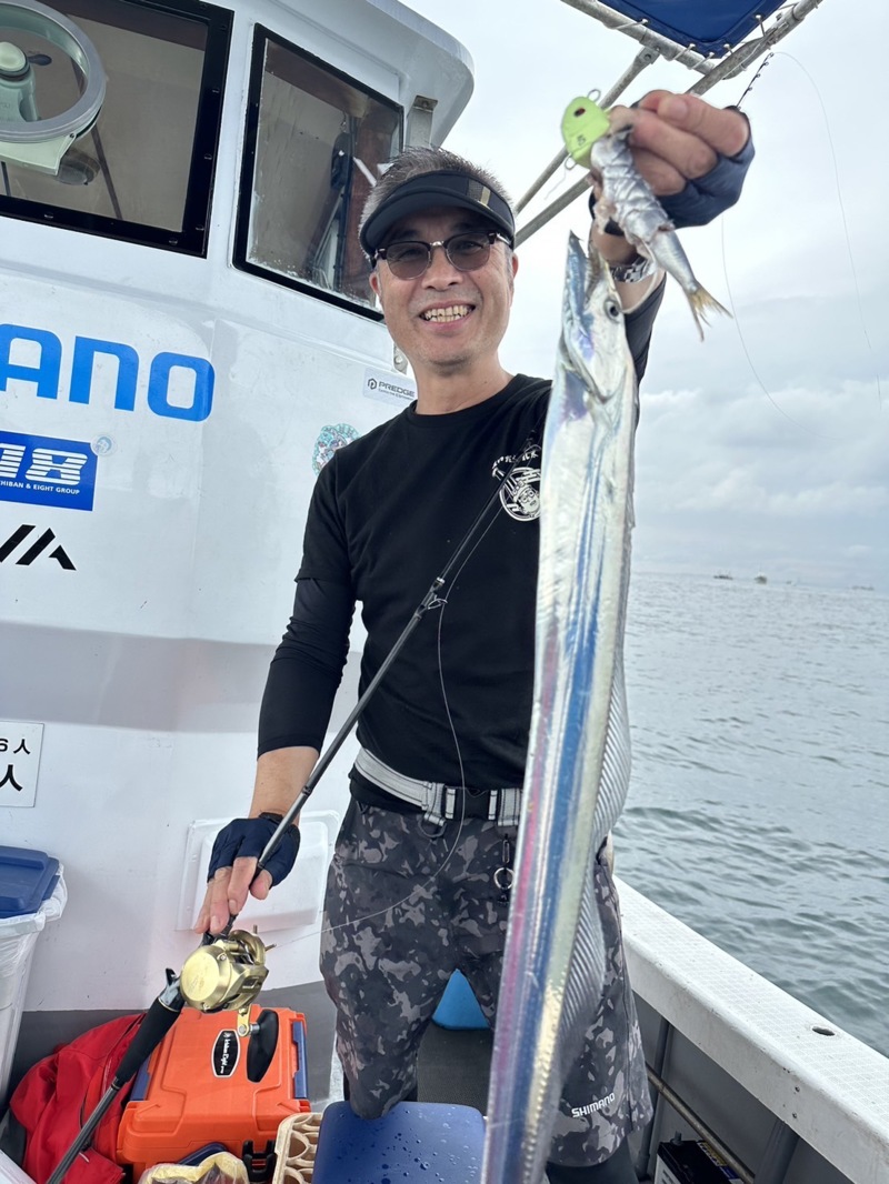 よくみると大阪湾タチウオキングバトルに出ている金森さんが乗船されていて、タチウオを釣れるタイミングで連発させるのには圧巻!!
