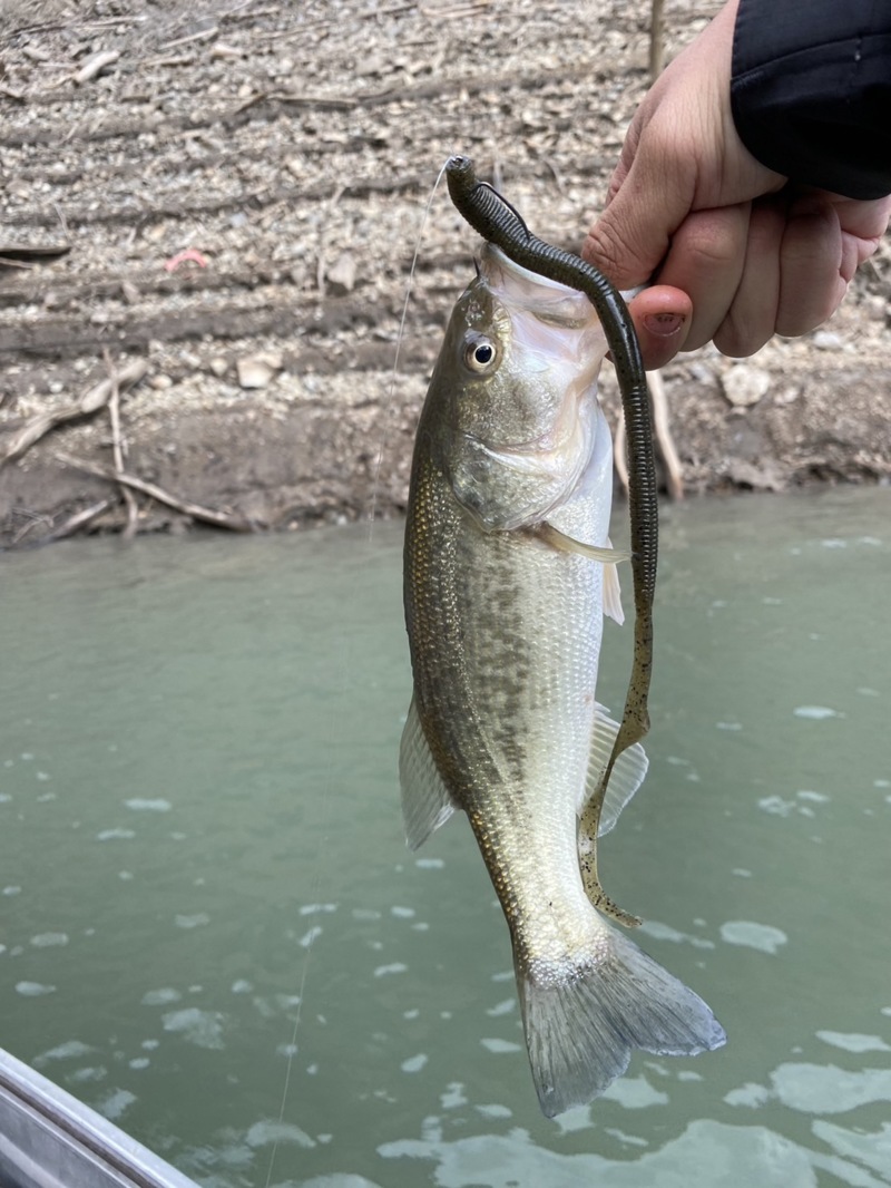 その後もサイズアップを目指してフリックカーリー7.8inやキャラメルシャッドにワームを変えました。そこではサイズは35cm程まででしたが、多くのバスを釣る事が出来ました!