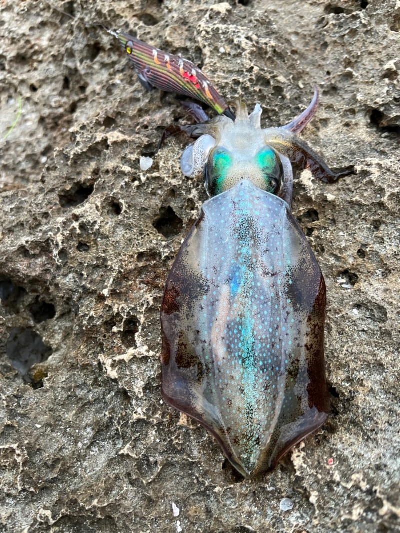 宮古島含む沖縄等の南方で釣れるアオリイカは全部で3タイプいますが、一般的にショアから狙えるのが「クワイカ型」と呼ばれるアオリイカです😊