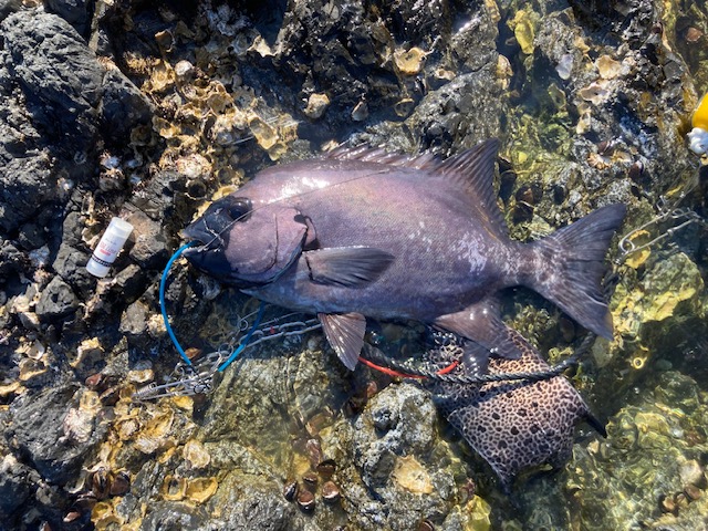 - 竿:がまかつ がま石REGISⅢ 520くわせ リール:シマノ 23スピードマスター石鯛 3000T 道糸:ナイロン20号 天秤捨て糸式 オモリ:25号~30号 針: gamakatu本石15号他 エサ:ウニ
