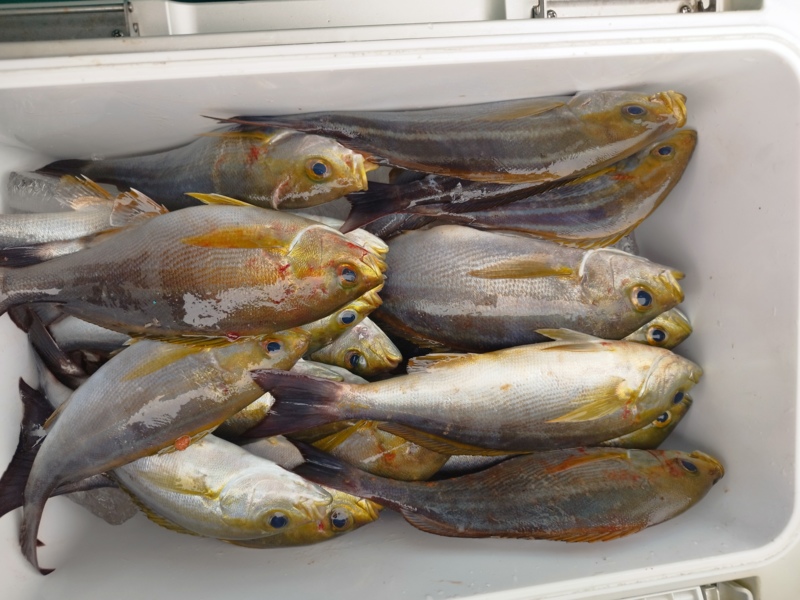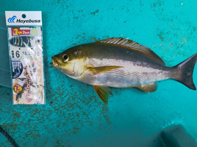 途中ウリ坊が掛かりそのまま上げると青物が食い付き仕掛けを何度も切られました。仕掛けの予備はなるべく多く持って行くことをオススメします。