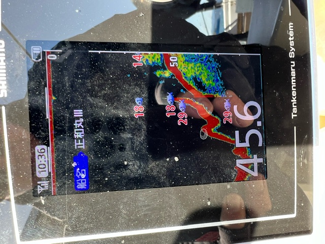 私の行った日は今季最低だったようで魚探の移りも悪く、朝から昼過ぎまであちこちのポイントを回ってくれましたが全く口を使ってくれず。