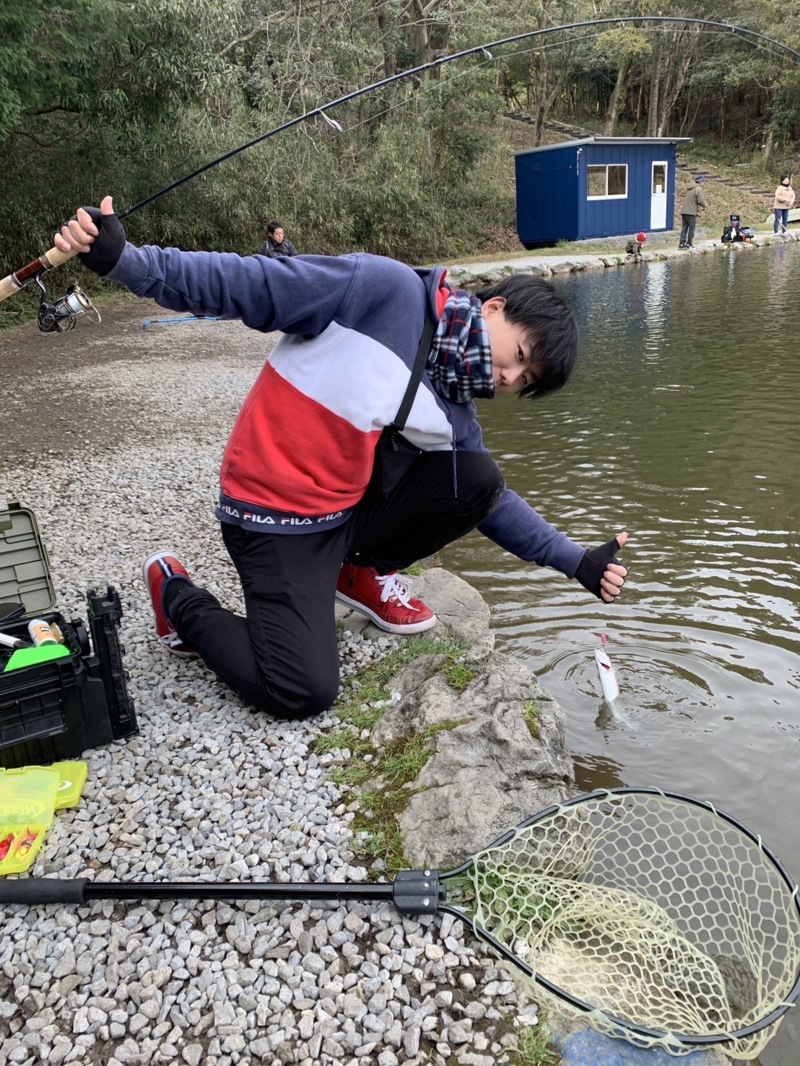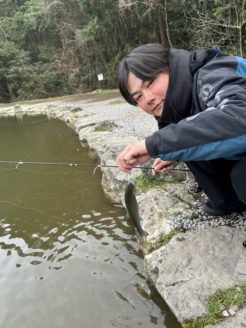 投げるのに苦戦しながらもサンクチュアリさんのポテンシャルが高いので初心者でも簡単にニジマスをキャッチすることが出来、スタッフ大満足!!!