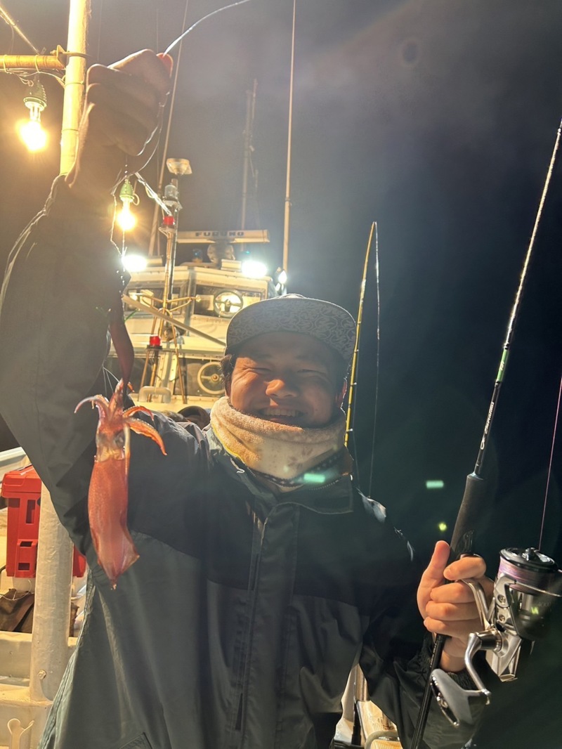 20時頃、メタルで誘い方やドロッバー等こまめに変えて試行錯誤しているとガツンと重たいアタリがあり、上がってきたのは良型のスルメイカ!!大きくよく引いて楽しめました✨