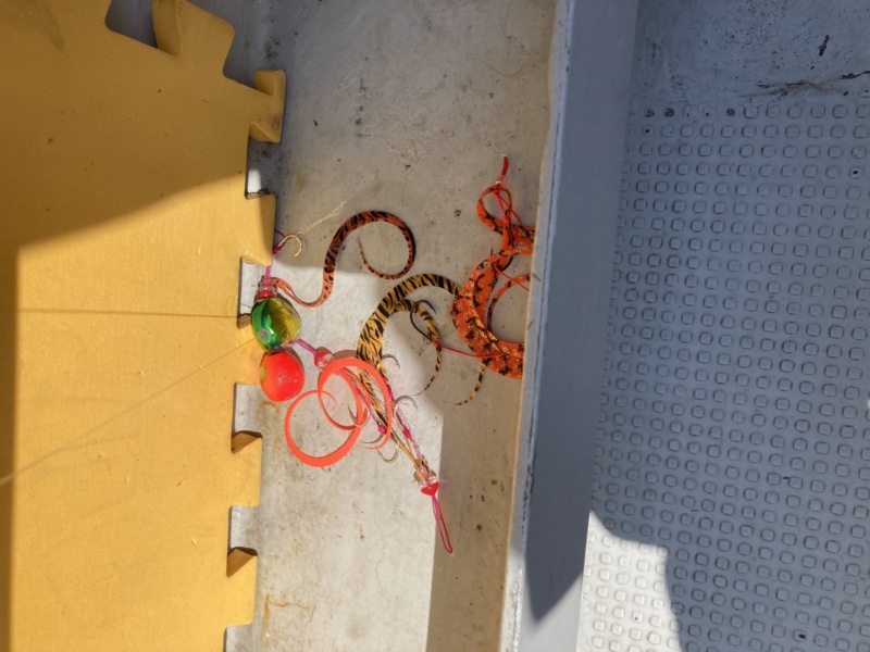 最初は浅めの水深30mからスタート。STARTのオレンジTG60gに松岡スペシャル濃いオレンジ80mmで攻めます。前回ガシラ2匹にメバル1匹釣れた実績があるネクタイなので期待しましたが...今日は前回以上に厳しい😥