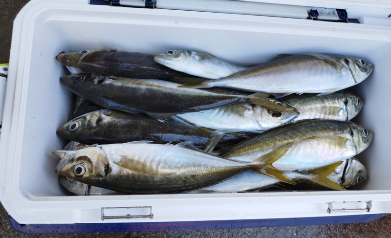 岬丸さんでのジャンボイサキ釣りの予定がまだ釣れ続けている黄金アジ😆