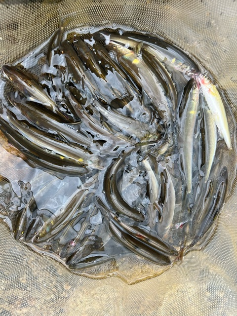 アタリがなくなるまでこの瀬4~5メートル足らずで50匹程キープ。