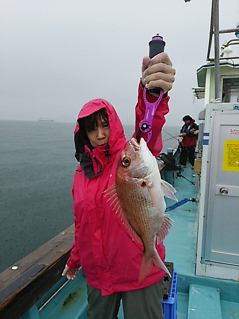 良型のマダイが釣れ、メンバーのテンションが一気にUP!!