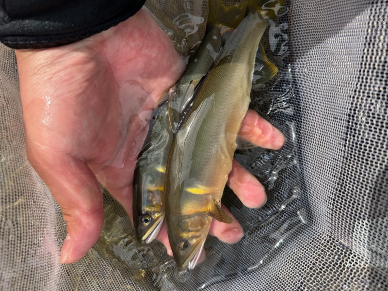 ちび鮎の群れが浅いエリアをピカピカに磨いてました。今年も魚影は濃いのではないでしょうか。